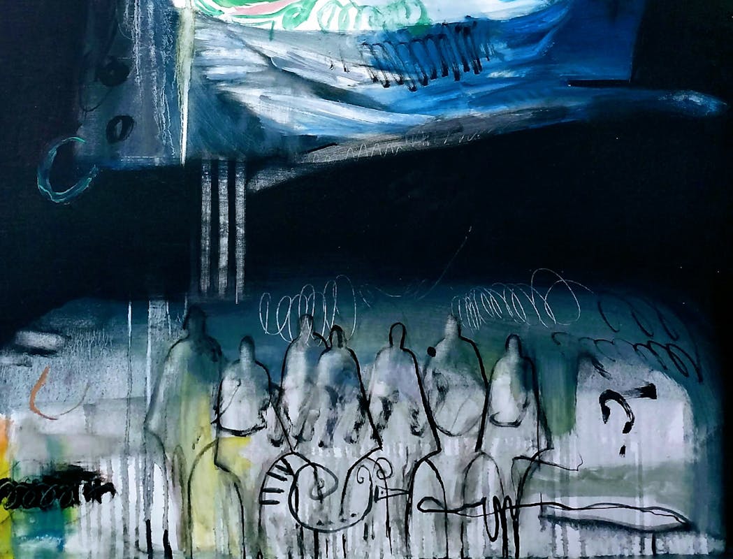Mundir Al Sahlani werkt en woont sinds 1989 in Nederland. Al in zijn vroege jeugd in Iran was tekenen zijn passie. De oorlogssituatie van de jaren 80 laat zijn sporen na in zijn schilderijen. Oorlogsleed, onderdrukking, angst en wanhoop, maar ook vreugde en hoop zijn terugkerende emoties in het werk. De eenvoudige lijnen, de symbolen en het specifieke kleurgebruik geven zijn schilderijen kracht. Mundir heeft geëxposeerd in binnen- en buitenland en toont nu zijn werk in retrospectief.