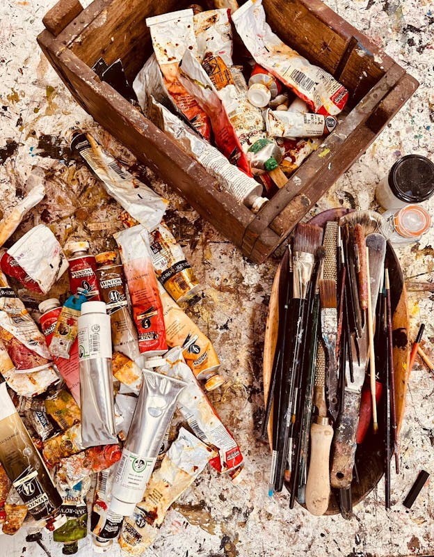 Er zijn werken te zien waar ik nog mee bezig ben, voorstudies, maar ook schilderijen die al af zijn. Mijn moeder Gerrie Hoogveld zal aan het werk zijn met haar bronzen beelden, om ook in dat proces wat inzicht te geven.