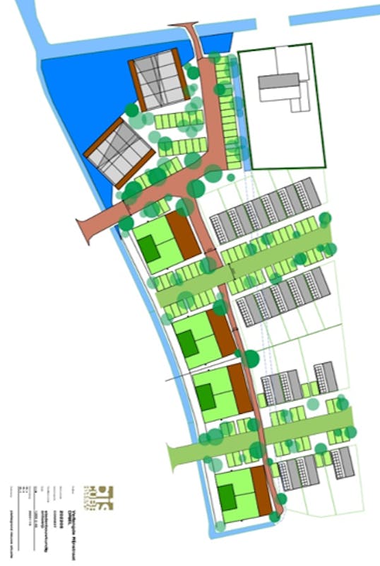 Het plaatje in de bijlage is een weergave van het meest recente plan. Het betreft 41 woningen op 1.14 ha grond. Er hebben meerdere studies met de gemeente plaatsgevonden, wat uiteindelijk heeft geleid tot een plan. Via deze link is het stedenbouwkundig rapport te downloaden.