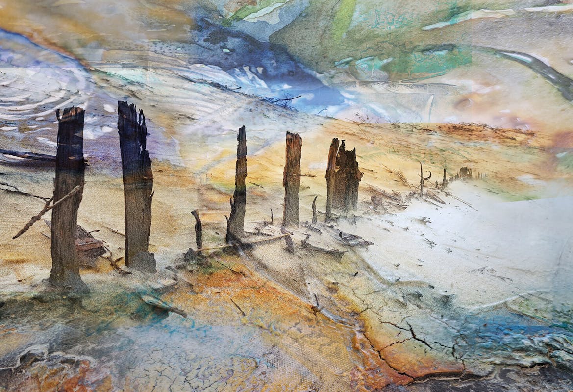 Linda ten Dam komt via gelaagdheid en mysterieuze ruimtes in een wereld van geabstraheerde landschappen.
