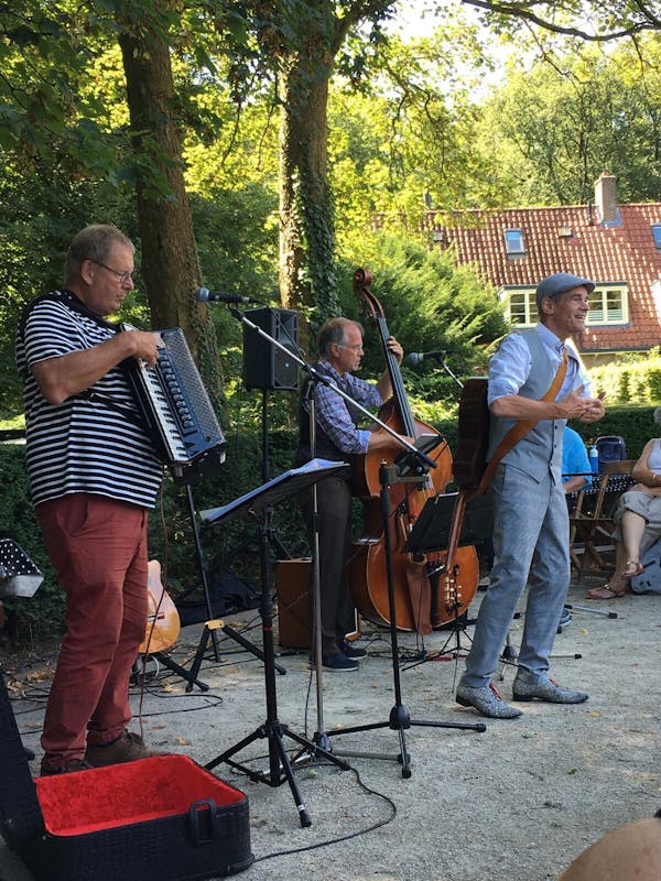 Chansongroep Les Copains brengt ons zondagmiddag 27 oktober in de bekende, vertrouwde sfeer van het Franse chanson, dat ook in Nederland een voedingsbodem heeft gekregen. Met hun akoestische instrumenten zorgen de muzikanten voor een warme en informele sfeer. Les Copains bestaat uit drie ervaren muzikale kameraden die hun sporen hebben verdiend in de wereld van het chanson, de populaire en de klassieke muziek. Het gezelschap bestaat uit Paul Drijvers (zang en gitaar), Henk Kuik (accordeon en zang) en Philip Woudenberg (contrabas en zang). De muzikanten brengen een breed repertoire ten gehore, bestaande uit zowel klassiekers van Jacques Brel en Charles Aznavour, alsook eigentijdse chansons van Zas en Thomas Dutronc. Ook gypsy arrangementen passeren de revue. De muziek zit boordevol emotie en neemt de toehoorder mee langs uiteenlopende facetten van het leven: geluk, hoop, verdriet en liefde.