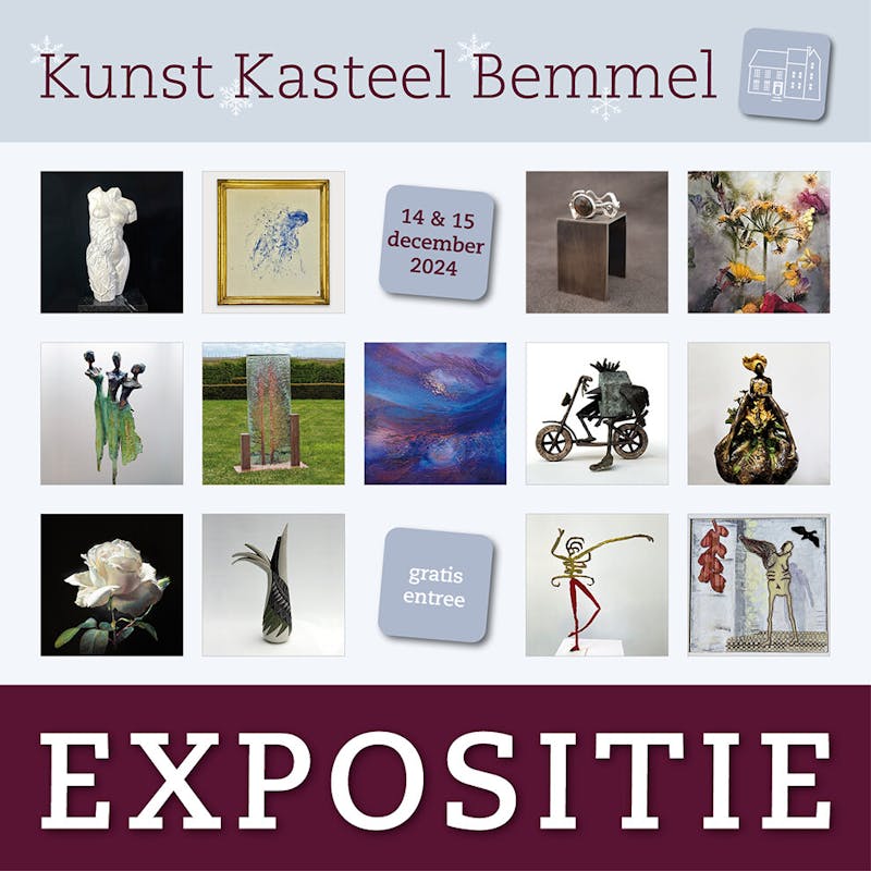 De 9e editie van ‘Kunst Kasteel Bemmel’ vindt plaats op zaterdag 14 en zondag 15 december. De expositie is van 11.00 – 17.00 uur opengesteld voor het publiek.