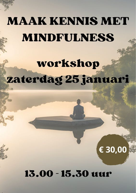 In deze mindfulness workshop maak je op een ontspannen manier kennis met mindfulness. Je leert over het brein en zijn evolutie, hoe stress, piekeren en angsten je dagelijks leven kunnen beïnvloeden. Je leert in de workshop verschillende meditaties en vormen van mindfulness zodat je na de workshop dit meteen in de praktijk kan brengen.