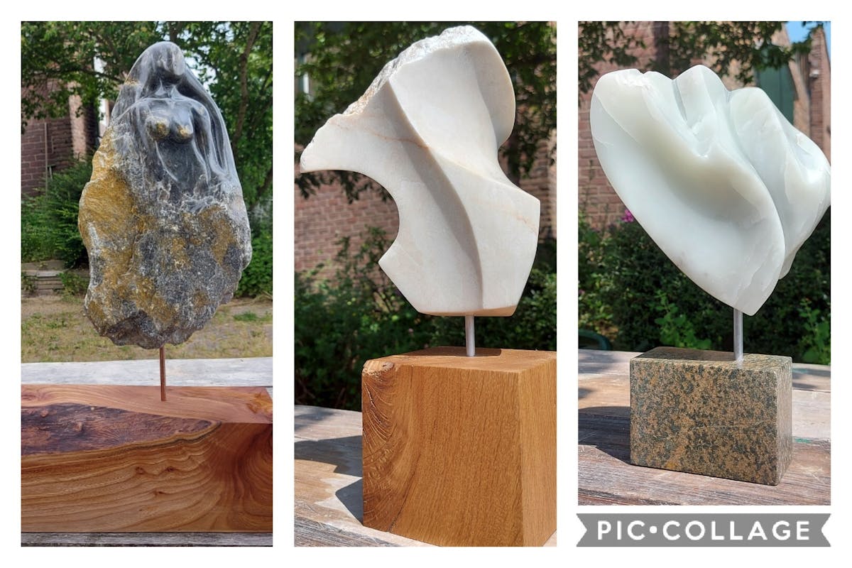 Tijdens de cursus doorloop je het hele beeldhouwproces en werk je met Braziliaans en Aziatisch speksteen, Serpentijn en Albast. Dit zijn zachte steensoorten, perfect om mee te beginnen of je techniek te verfijnen. Als het weer het toelaat, werken we buiten in de boomgaard of op het veld van de boerderij.