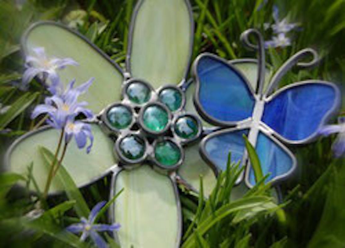 Glaswerkplaats Rivierenland uit Opheusden laat het in hun atelier gemaakte glas in lood en Tiffany zien, dat je ook kunt kopen.