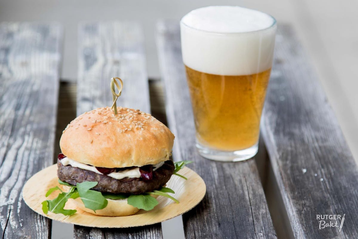 Je kunt genieten van de heerlijkste Hamburgers van de BBQ, en van het Geweldig bier gebrouwen door Toon Veens.