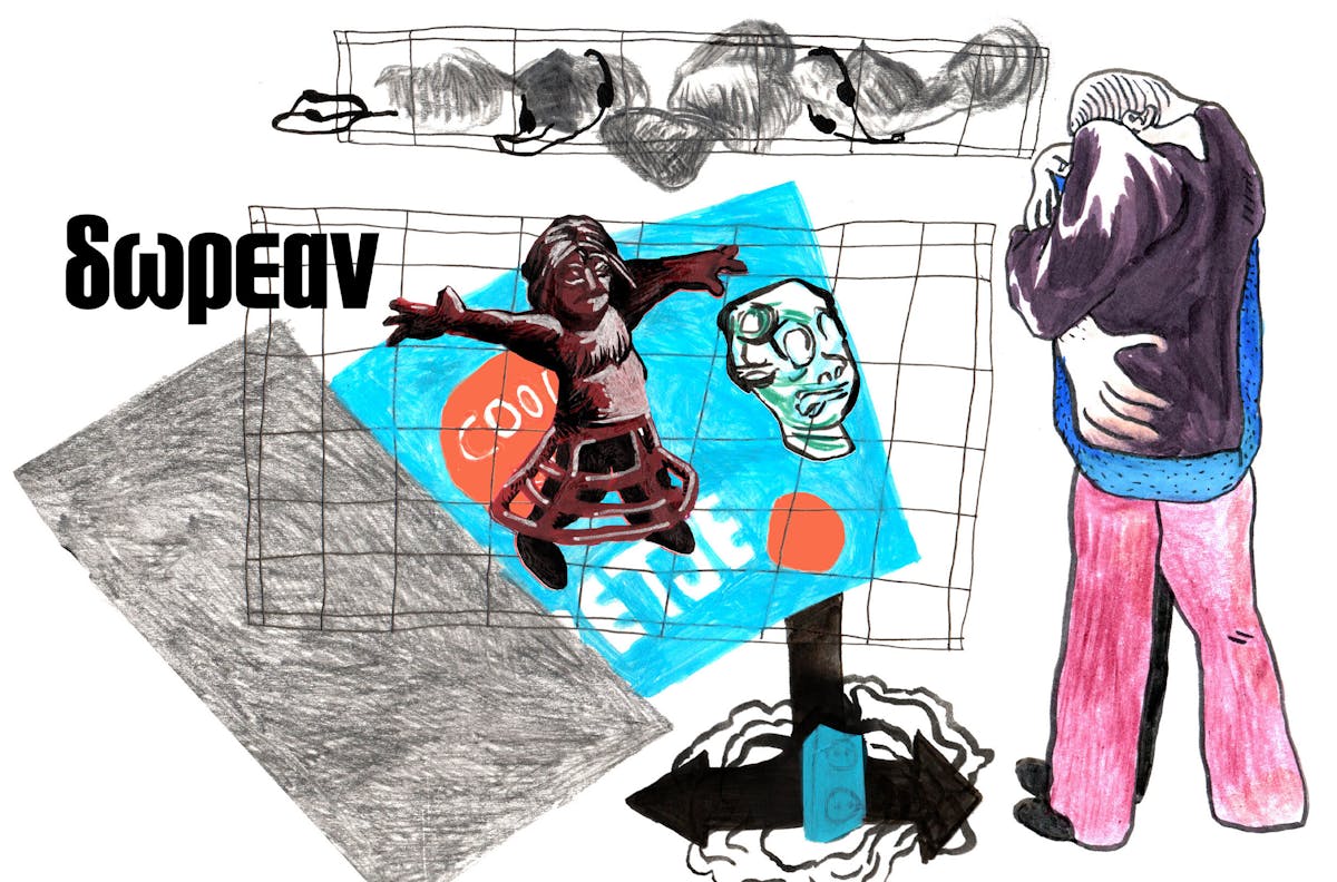 Tijdens de aanloop naar de tentoonstelling ‘ΔΩΡΕΑΝ ’ werden veel gesprekken gevoerd en gediscussieerd over de rol van de kunstenaar in de huidige samenleving. Als jonge kunstenaars veroorzaken ze een groot effect door ingrepen te doen op de actualiteit om hen heen. De focus in deze expositie is o.a. gericht op de dingen in de kunstruimte die normaal over het hoofd worden gezien. Zo wordt de beschouwer door de kunstenaars actief aangezet tot nadenken en krijgt deze ook een vernieuwde blik op het begrip Galerie-expositie.