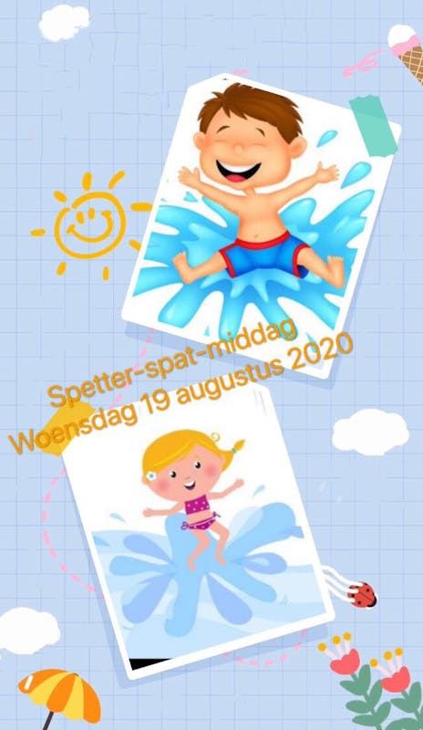 Peuteropvang De Kleine Musketiers verzorgt woensdag 19 augustus van 14.30-16.00 een gratis spetter-spat-middag voor kinderen van 1,5 tot 4 jaar.