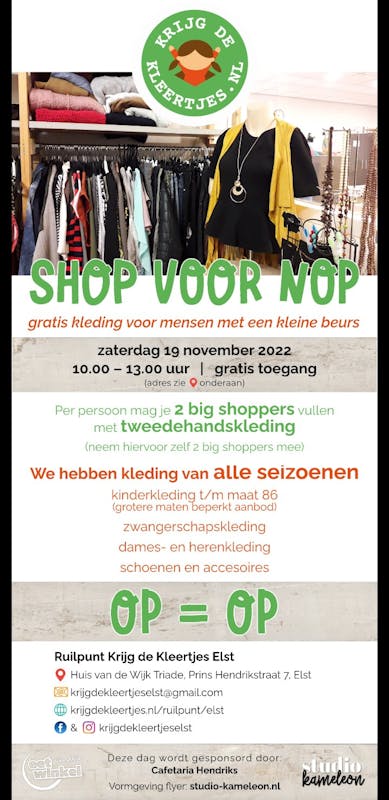 Bij het ruilpunt KrijgdeKleertjes in Elst kun je kinderkleding (maat 50 t/m 176), dames- en herenkleding en schoenen ruilen. Maar ook acc......