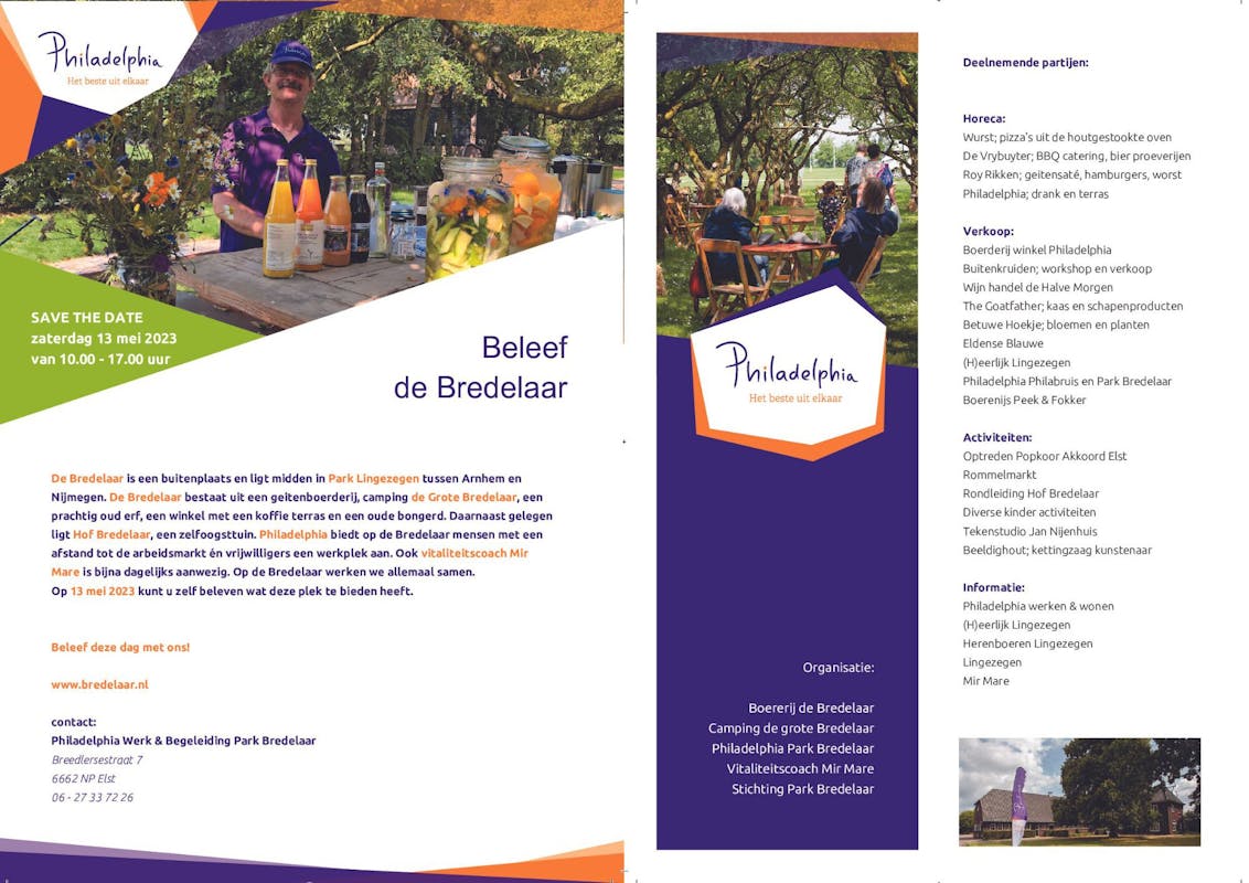 Zaterdag 13 mei kunt u de Bredelaar beleven. Kom kijken wat wij hier doen, maar ook waarom deze plek voor u leuk is om te bezoeken!