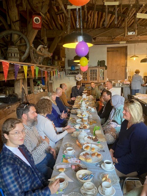 Ongeveer 20 nieuwe inwoners van de Overbetuwe hebben gisteren genoten van een heerlijke High Tea bij Museumboederij Den Tip in Herveld.