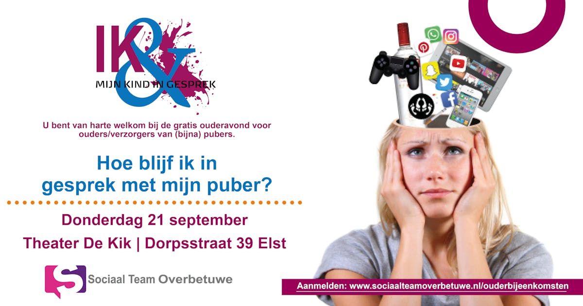 U bent van harte welkom bij de gratis ouderavond voor ouders/verzorgers van (bijna) pubers. Het onderwerp van deze avond is: Hoe blijf ik in gesprek met mijn puber?