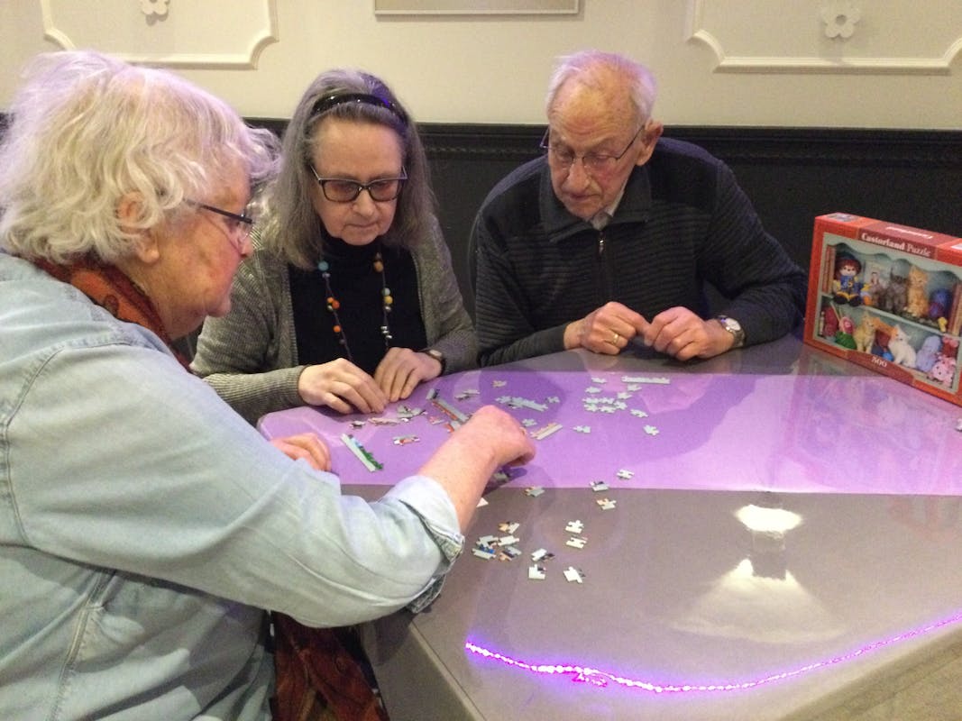 Donderdag 16 maart werd er niet alleen koffie gedronken in de Huiskamer Driel. Er waren leuke legpuzzels waar hard aan gewerkt werd om ze te leggen. Twee groepen van de bezoekers streden om de eer, maar een van de groepen is 1 uur en 10 minuten bezig geweest. Toen was de hele rand klaar. Zij werden verrast met een leuke attentie voor hun doorzettingsvermogen.