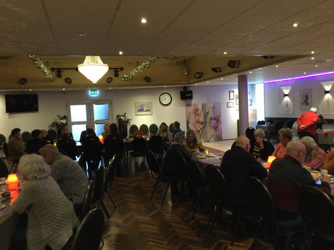 Dan zorgen wij tegen een kleine vergoeding voor de koffie en de thee en een sapje met een hapje.