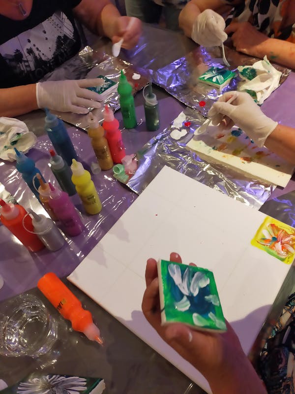 Als je een groter schilderij wilt zou je thuis kunnen kiezen voor een groter canvas en grotere lepels.