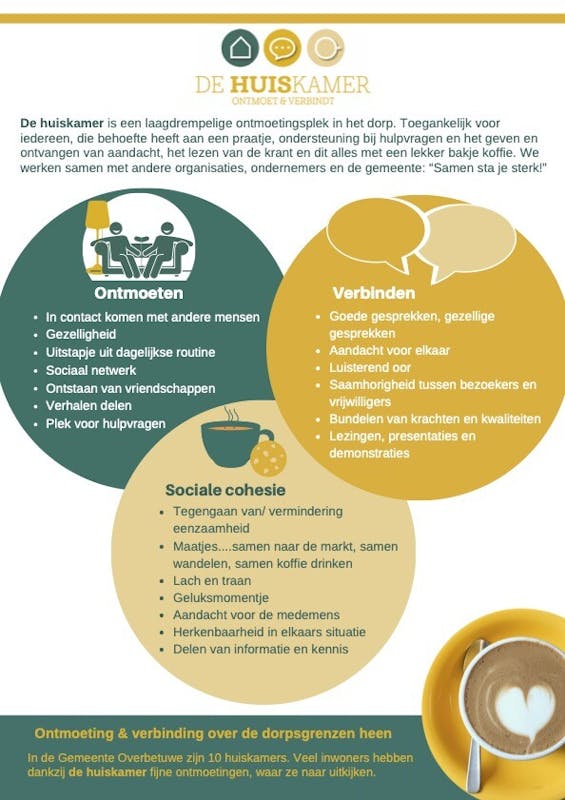 Wees welkom om een keer koffie te komen drinken in een van de huiskamers.