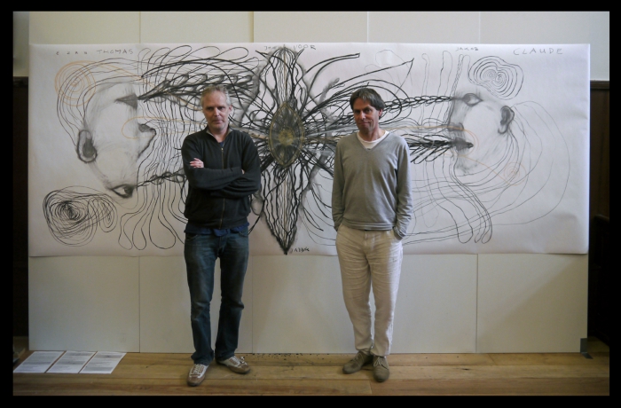 Rinke Nijburg en Andries van Rossum, met op de achtergrond het resultaat van hun 10e performance in 2014.