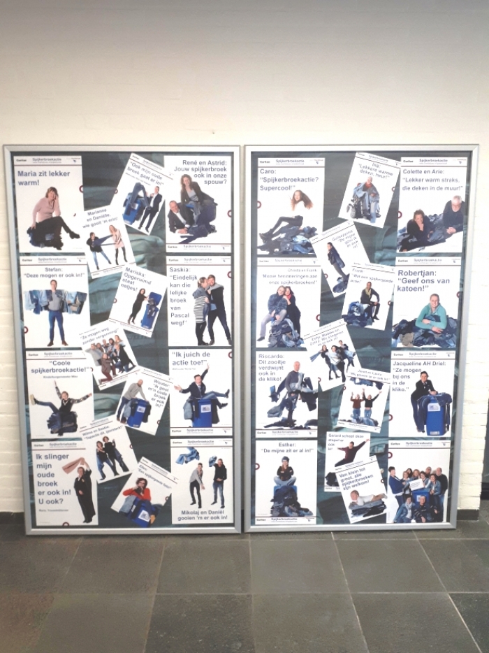 Inwoners uit Overbetuwe doen heel enthousiast mee en doneren hun oude spijkerbroeken in de kliko's! Kleine kinderbroeken, grote spijkerbroeken zelfs nieuwe spijkerbroeken en spijkerjassen en rokken hebben we aangetroffen tijdens de eerste ophaalronde, geweldig!