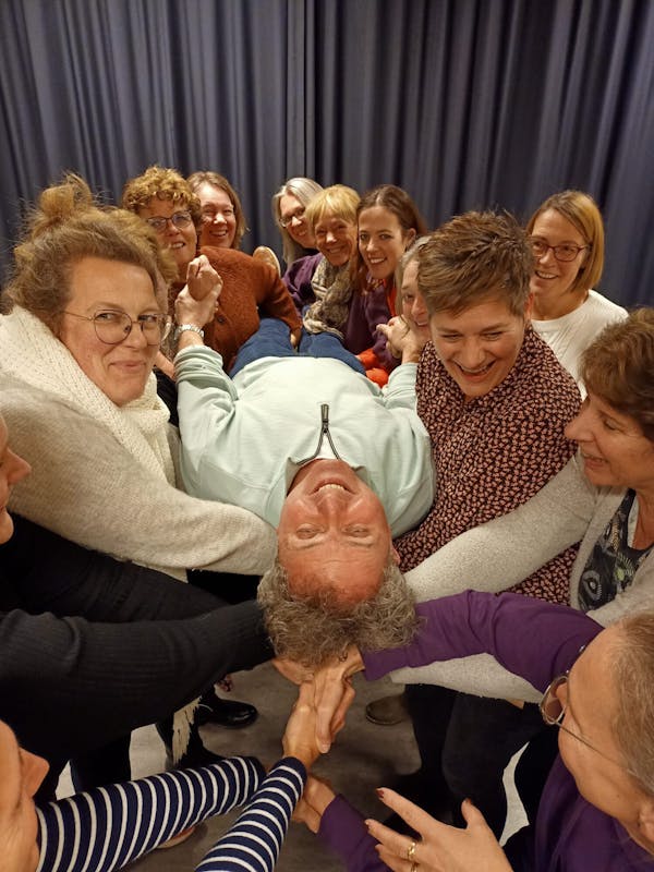 Mannen worden bij Popkoor Akkoord op handen gedragen