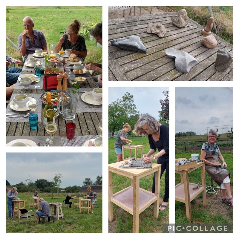 De opening van het seizoen was meteen een succes. 7 enthousiaste beeldhouwers maakten in één dag een prachtig beeldhouwwerk.