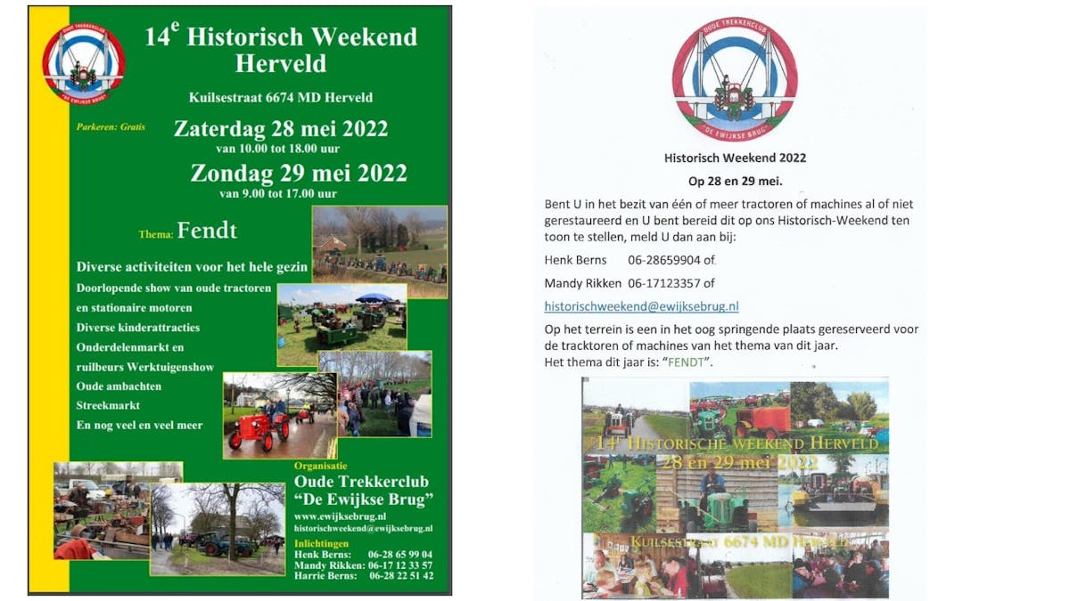 "Ons Historisch Weekend staat weer gepland op 28 en 29 mei 2022, heeft U iets wat U wilt showen of wilt U alleen maar komen kijken wees dan welkom op ons evenemententerrein.