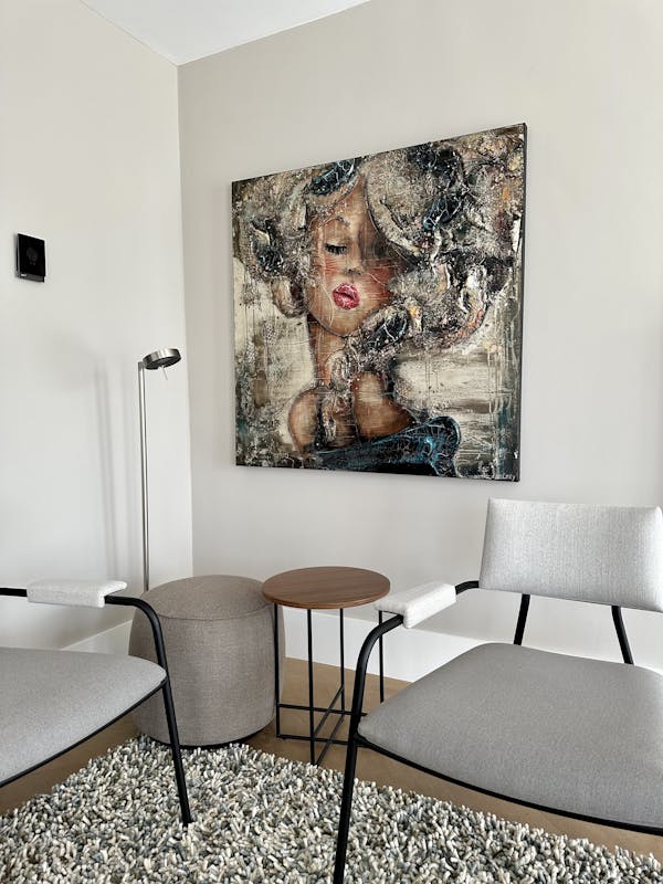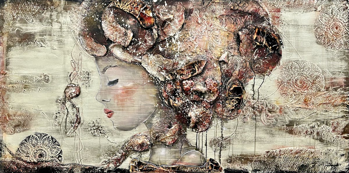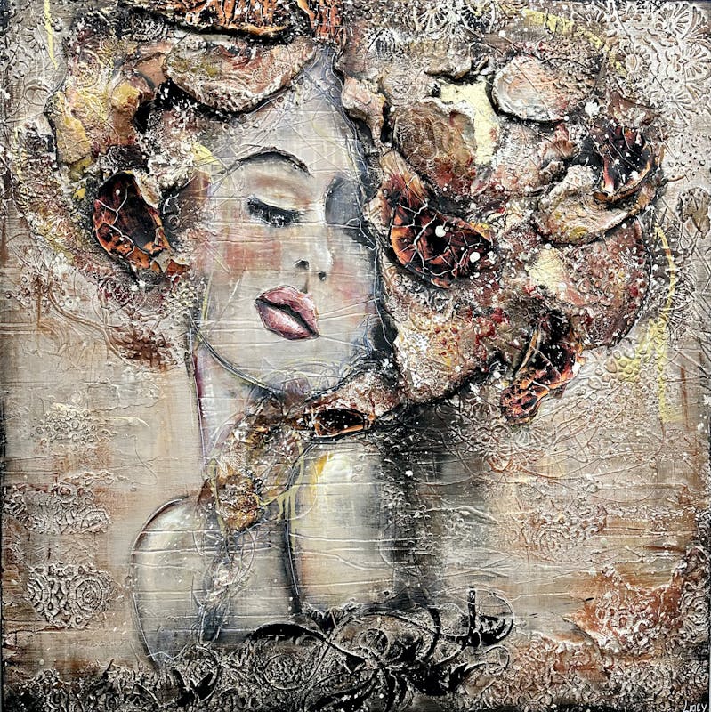 Binnen kunt u de nieuwste werken van Lincy Hoogveld zien. Laat u verrassen door de geheel nieuwe kleurtonen in de laatste werken. Met soms wel meer dan tien lagen verf en textuur zijn de kenmerkende reliëfrijke schilderen opgebouwd tot unieke creaties.