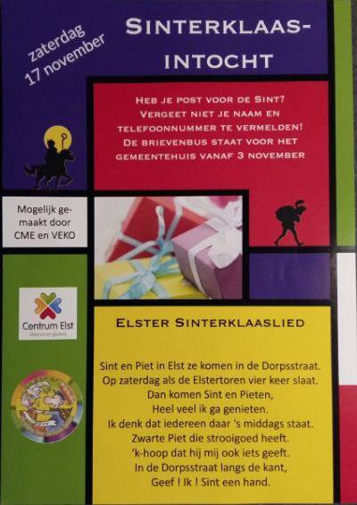 Heb je Post aan de Sint? Die kun je vanaf 3 November inleveren bij de Brievenbus voor het gemeentehuis in Elst. Zet ook je naam en telefoonnummer op je brief.