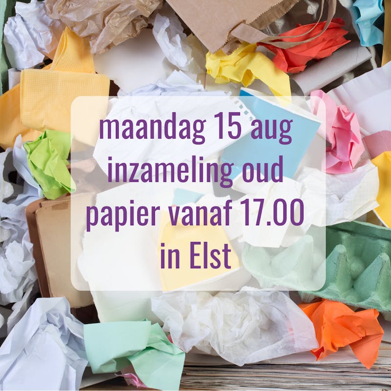 Let op: maandag 15 augustus haalt Prezero het oud papier vanaf 17.00 uur op. Zet het oud papier voor 17.00 uur aan de straat.