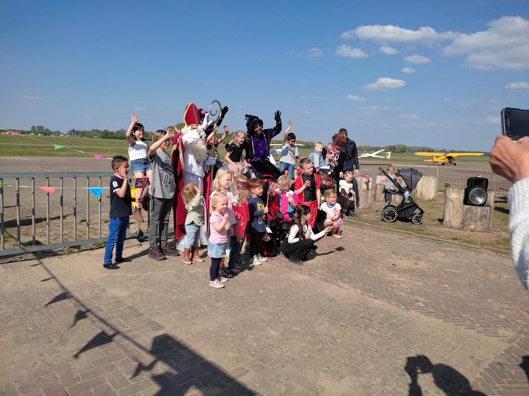 Nou hij was al begonnen met sightseeing en kreeg een rondvlucht over Teuge. Omdat Sint op vakantie is had hij alleen zijn jurk aan en een werkpet op. Voor de kindjes heeft hij wel snel zijn outfit compleet gemaakt. Ook al was het zo heet. Sint heeft het dapper volgehouden.