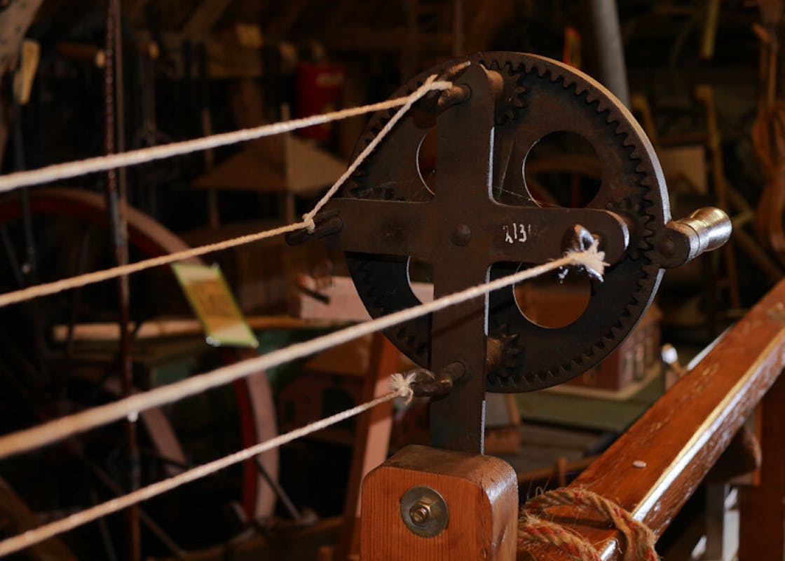 Tegenwoordig wordt touw machinaal gemaakt, maar vroeger werd dit met de hand gedaan. Een touw wordt gemaakt door dunne vezels om elkaar te draaien; dit heet slaan. Men gebruikten hier een wiel voor. Ons museum heeft nog zo'n wiel op zolder staan.