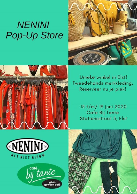 Op 15 juni opent Nenini een unieke pop-up store met tweedehands merkkleding voor dames in Cafe Bij Tante in Elst. Het cafe hangen we vol met de mooiste merkkleding en er staan zelfs speciale rekken waarop alles €15 euro per stuk is.