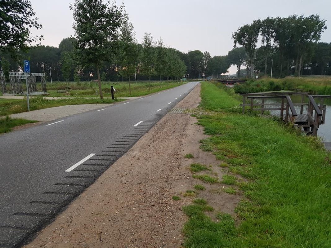 Een rolstoel geschikte vissteiger met een invalidenparkeerplaats aan de Kampsestraat in Elst. Net over de snelweg A325 richting Huissen