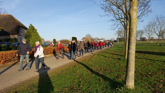 De groep van 5 en 10 kilometer wandelen ongeveer 6,5 kilometer door Herveld-Andelst.