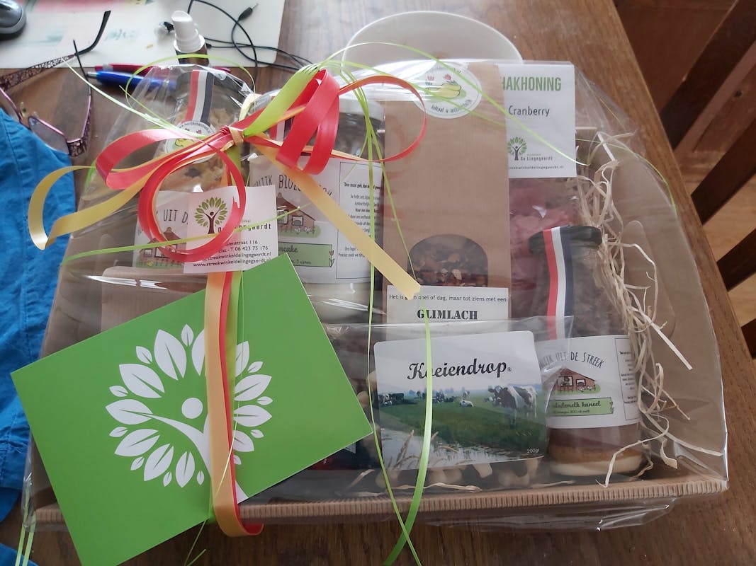 Vandaag zijn Bernadette en Elly naar Randwijk gereden om de hoofdprijs van de prijsvraag uit te reiken aan Andrea Hendriksen. Zij ontving een mooi pakket van streekwinkel de Lingegaert in Elst. Van harte gefeliciteerd en veel plezier met de prijs.