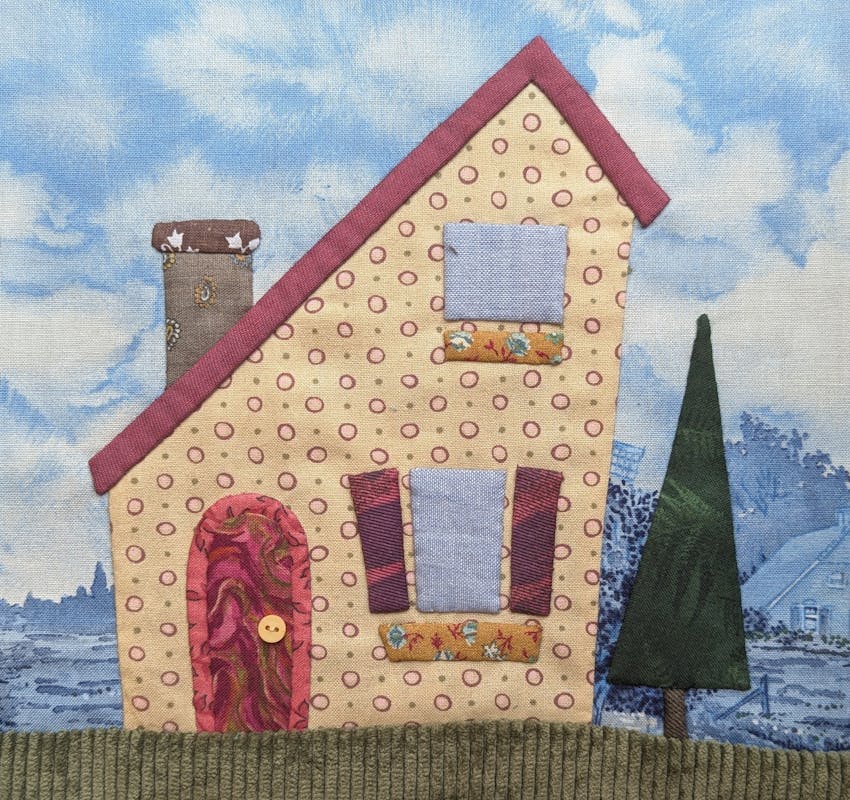 De eerste workshop is naaldappliqué. Hierbij naai je met de hand volgens een patroon verschillende lapjes stof op elkaar. Er ontstaat zo als het ware een collage van textiel. In deze workshop van een halve dag, op zaterdag 10 augustus, leer je de basisvaardigheden van naaldappliqué, waarna je die gebruikt bij het maken van een huisje. Deze vorm van handwerken leent zich er bij uitstek voor om persoonlijke stoffen in te verwerken. Dit kunnen kledingstukken zijn of andere lapjes met emotionele waarde die zo een nieuwe bestemming krijgen in een kunstwerk. Maar Yvonne van Amerongen neemt ook veel lapjes mee.