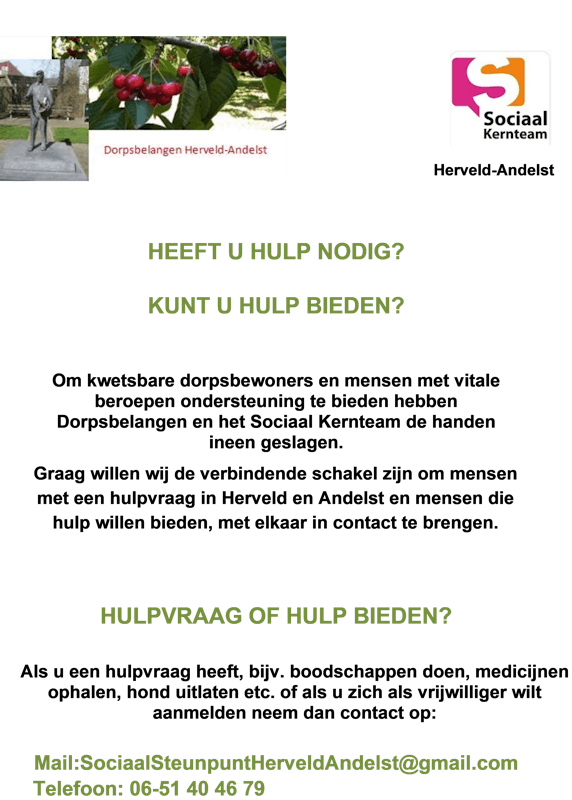 Wij bemiddelen tussen vragen en aanbod voor mensen uit Herveld-Andelst.