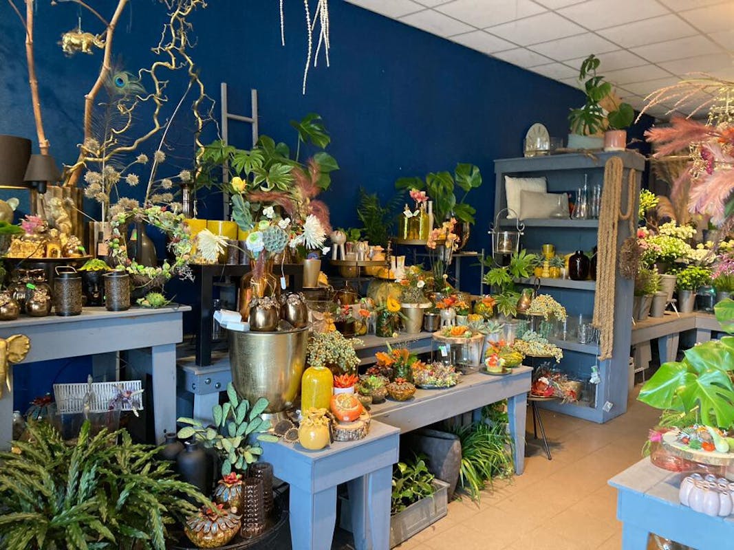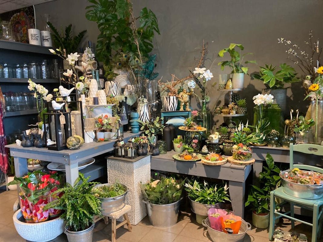 Wanneer ik de winkel binnen stap word ik blij. Zo veel kleuren. en ook heel veel hebbedingetjes. In de winkel is er een veelzijdig assortiment aan bloemen, vazen, kaarten en decoratie. Om het makkelijk te maken is het ook nog harmonisch gesorteerd op kleur.